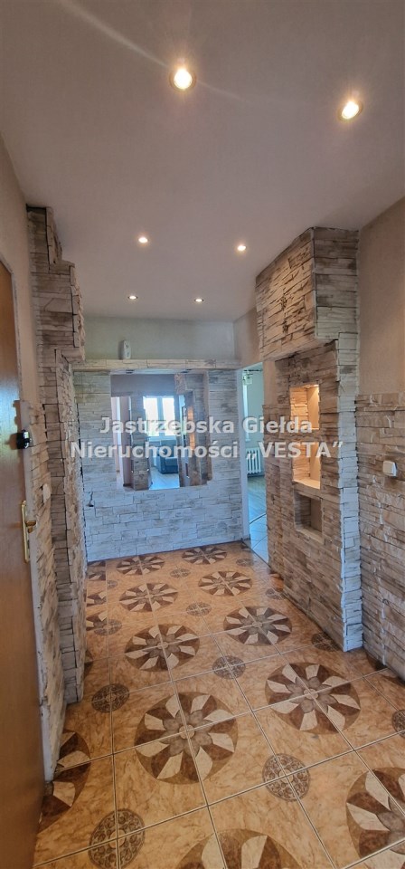 Mieszkanie składa się z salonu, kuchni, łazienki, 3 pokoi i przedpokoju.