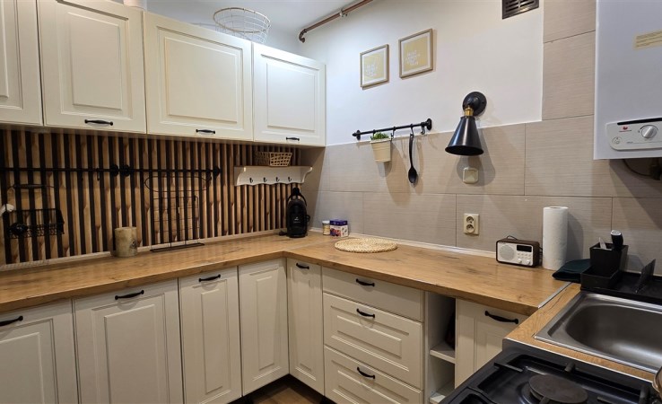 Kuchnia wyposażona w zabudowę kuchenną , kuchenkę gazowo-elektryczną, lodówkę, łazienka wyposażona w wannę sanitariaty w bardzo dobrym stanie, do dyspozycji pralka, w przedpokoju szafa.
